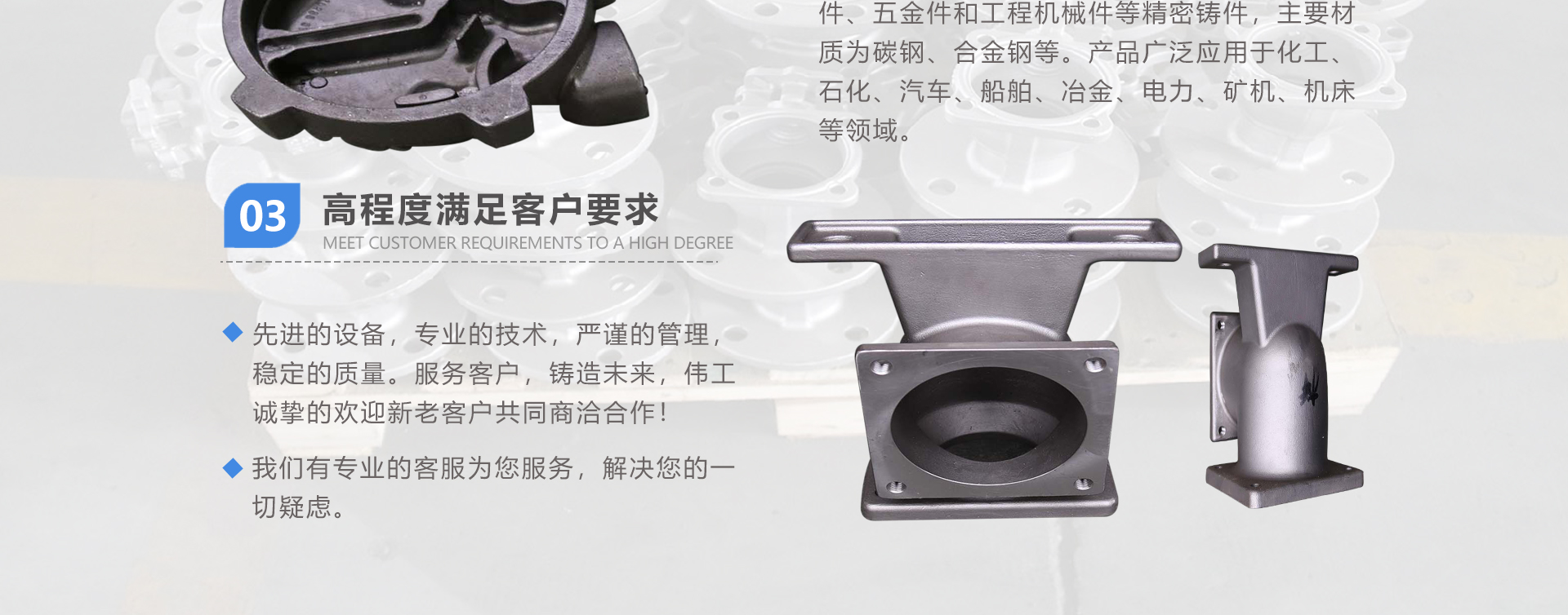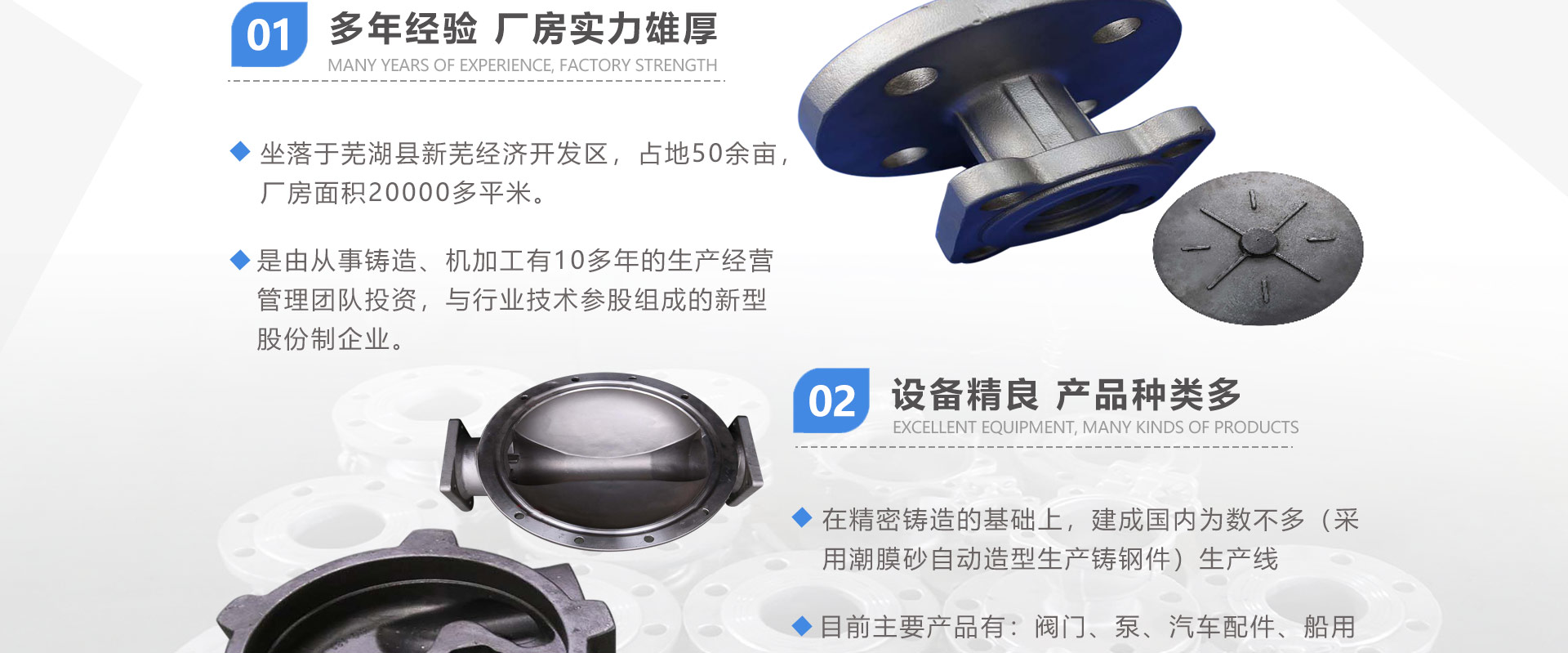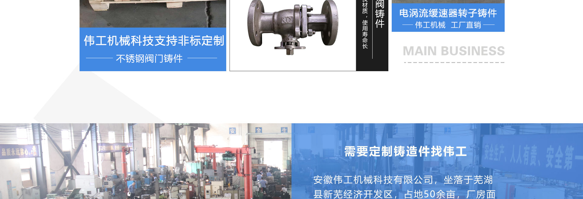安徽偉工機(jī)械科技有限公司,坐落于安徽蕪湖新蕪經(jīng)濟(jì)開(kāi)發(fā)區(qū),是一家専業(yè)從事鑄造產(chǎn)品設(shè)計(jì)、研發(fā)、生產(chǎn)、銷(xiāo)售于一體的企業(yè),公司為客戶(hù)的產(chǎn)品提供多樣的技術(shù)支持與設(shè)計(jì),公司主要鑄造技術(shù)有潮模砂鑄造、硅溶膠精鑄工藝。主要產(chǎn)品有:不銹鋼閥門(mén)配件、泵閥配件、汽車(chē)配件、工業(yè)管道配件、工程機(jī)械配件、汽車(chē)配件等。材質(zhì)為:低合金鋼、304、316、316L、鉻鉬鋼、哈氏合金、碳鋼、雙相鋼等。公司已先后通過(guò)ISO9001和TS16949等多種體系審核,以完備的管理手段和齊全的檢測(cè)設(shè)備滿(mǎn)足客戶(hù)需求,進(jìn)的設(shè)備,専業(yè)的技術(shù),嚴(yán)謹(jǐn)?shù)墓芾恚€(wěn)定的質(zhì)量。服務(wù)客戶(hù),鑄造未來(lái),偉工誠(chéng)摯的歡迎新老客戶(hù)共同商洽合作